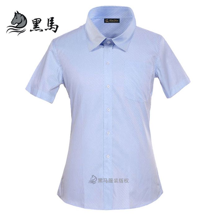 藍色標準領女士短袖襯衫