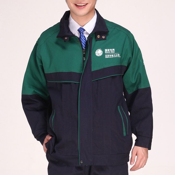 2)此款工裝是 電網(wǎng)專用工作服,右臂、胸口帶電網(wǎng)統(tǒng)一刺繡標志,左臂、胸口袋都可插筆,顏色清爽,線條簡潔,電力工程隊首選。