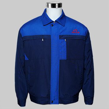 正面圖片:黑馬服裝公司為江河幕墻設計制作的這款工作服,采用普藍色與鄰近色藍色搭配,視覺更和諧舒適。符合亞洲人體工藝學的領部裁剪設計,讓你穿著時,不再有任何不適之感。DSC_0027.JPG